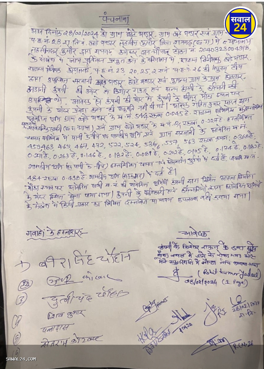 Adani Power government land अडानी पावर पर रायगढ़ में सरकारी भूमि कब्ज़े का आरोप, ग्रामीणों ने सौंपा ज्ञापन