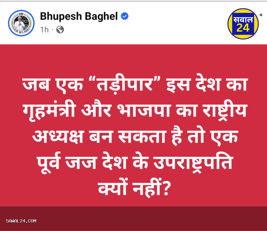 भूपेश बघेल का बड़ा बयान : “जब तड़ीपार गृह मंत्री और भाजपा अध्यक्ष बन सकता है तो पूर्व जज उपराष्ट्रपति क्यों नहीं?”