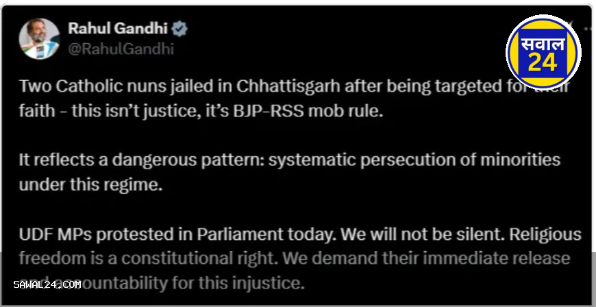 भिलाई की नन गिरफ्तारी पर कांग्रेस का "ईसाई प्रेम" उजागर, हिंदुओं के मुद्दों पर चुप्पी क्यों?
