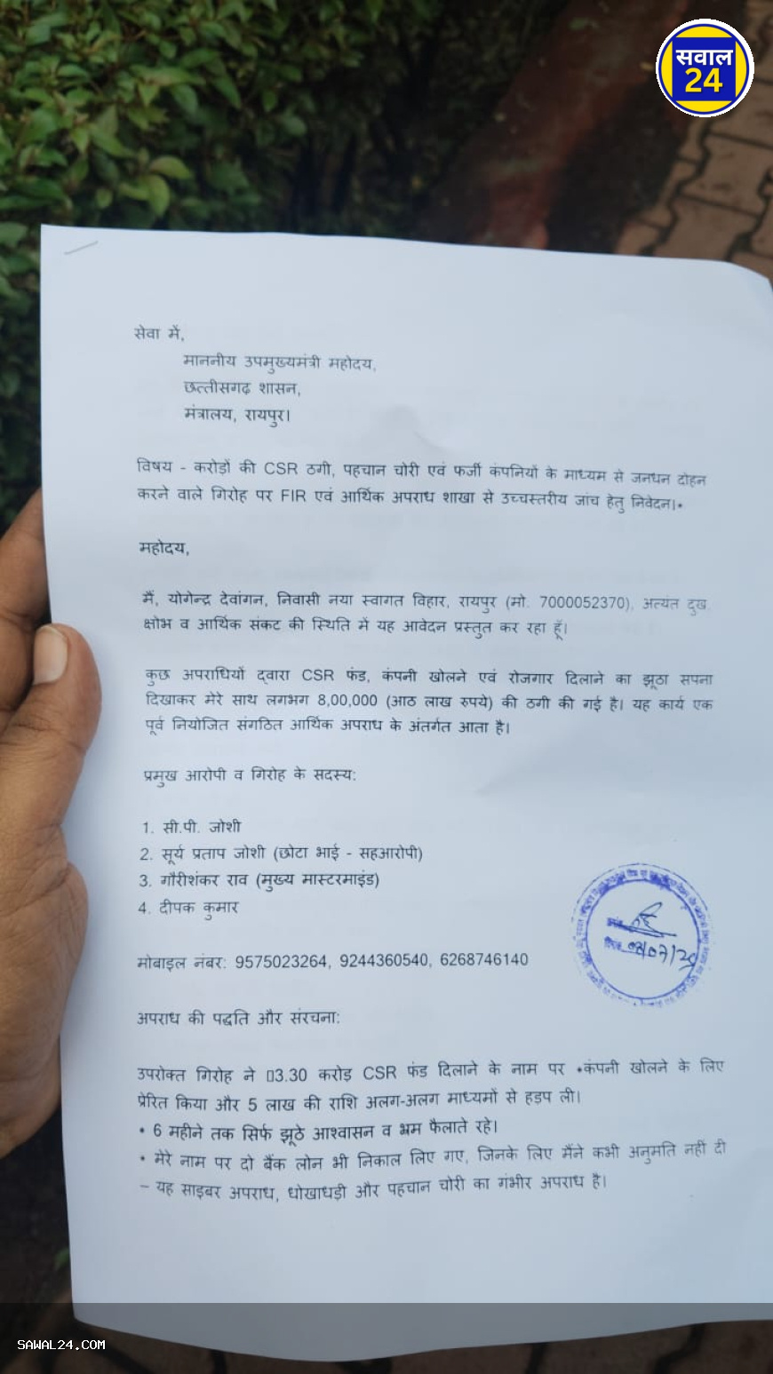 पीड़ितों ने प्रशासन को चेतावनी दी है कि यदि जल्द कार्रवाई नहीं होती तो 16 जुलाई 2025 को सुबह 11:00 बजे रायपुर जिले के शक्ति स्थित ब्रेनपिद्य स्किल्स कार्यालय के सामने शांतिपूर्ण प्रदर्शन और घेराव किया जाएगा।