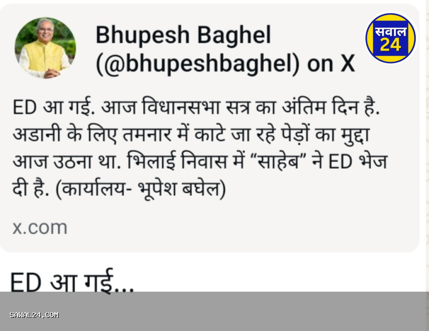 पूर्व मुख्यमंत्री भूपेश बघेल के निवास पर सुबह-सुबह छापा, बेटे चैतन्य के जन्मदिन पर पहुंची टीम भिलाई-तीन में ईडी की बड़ी कार्रवाई: